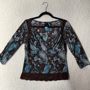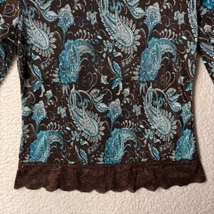 JTB Blouse Size L Surplice Y2K Boho Paisley Bohemian Hippie Peasant Lace Vintage