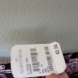 Color is called chocolate and pink. Brown and pink combo. Surplice neckline. Lace trim. Sold at Nordstrom. Stretchy thin fabric. Office, career, professional,colorful, versatile, 00's, brunch, festival, weekend, hang out, church, event, curvy, plus