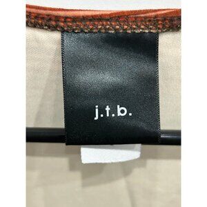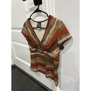 J.T.B Striped V-Neck Short Sleeve Top Brown Sz Small 90s Y2k Boho Earth Tones