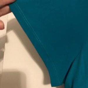 J.T.B. Woman size 18/20 short sleeved jacket with mock tank attached. Embellishment on top of tank and down lapels in gold color. Tunic length. New condition, never worn. 96% polyester with 4 % spandex. Beautiful color and embellishment. Stretchy fabric makes a comfortable fit.
