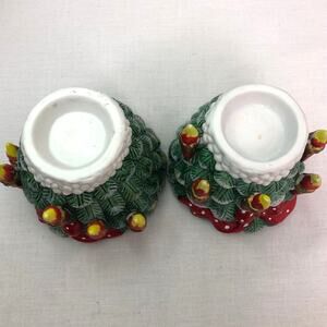 J.T.S. International Co Vintage 90's Hand-painted Ceramic Christmas Tree Red Bow Tealight Candle Holder Set of 2