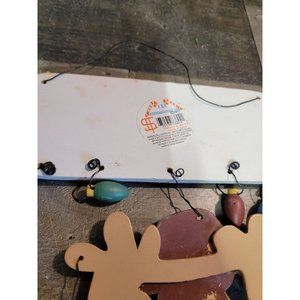 JTS international Wooden Seasons Greetings Reindeer string lights star sign xmas decor