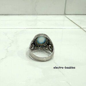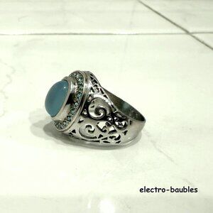 JTV 925 Sterling Silver Filagree Blue Chalcedony & Blue & White Topaz Ring Sz 8