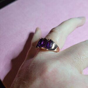 JTV ring with a 3.95 CTW marquise amethyst and 0.01 CTW of two white diamond accents. The band is 18K rose gold over 925 silver. Size 11. Purchased from JTV in 2018. Only worn a couple of times and in like-new condition. Also tried on a size 10, which is also like new. #amethyst #rosegold #silverring #jtv #diamondring #amethystring #rosegoldring