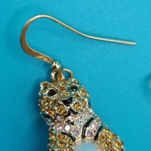 JTV Gold tone Dangle Multicolored Rhinestones Faux Pearl