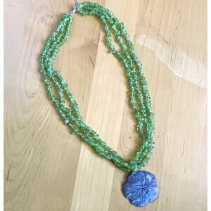 JTV New Peridot Chip Necklace with Shell Flower Pendant Sterling SIlver NIB Box
