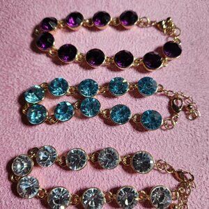 Off Park (R) Collection white, purple, and blue crystal gold-tone bracelet set of 3 purchased from JTV in 2020. Never worn.