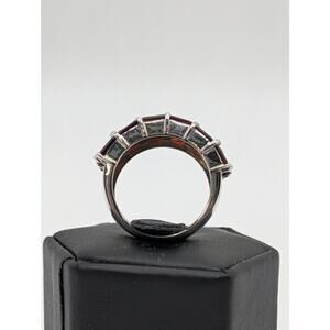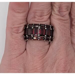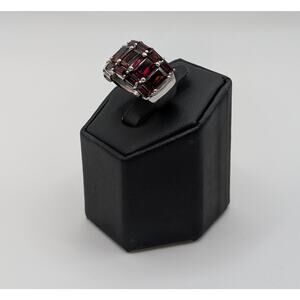 JTV Sterling Silver Red Garnet Baguette Band Ring Size 5 925 Wide Dome
