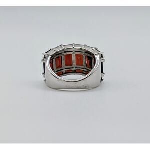 JTV sterling silver ring with red garnet baguettes arranged in a wide dome band design. Solid sterling silver with a polished finish.