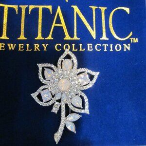 JTV Titanic Jewelry Collection Faux Opal & Faux Diamond Floral Pin - Gorgeous!!