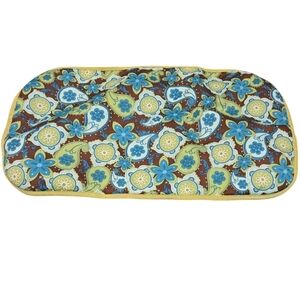 Pre-owned. Good condition. There is staining in the bag in several places as shown in the pictures. Includes backpack padded shoulder straps which are adjustable. You can also use 1 of the straps to make this bag a shoulder bag. Colors: Brown,green, and teal.