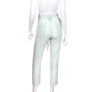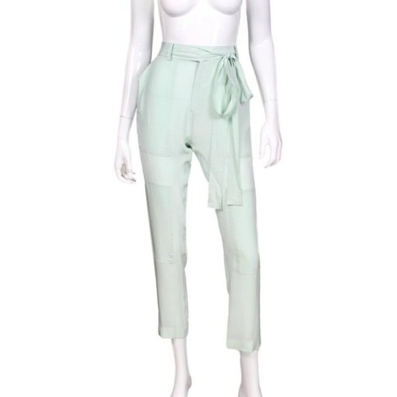 Description: These are a gorgeous pair of teal Juan Carlos Obando Poolside Tonka Trousers with two slit pockets at hips and two flap pockets at back, tonal stitching throughout, sash tie accent at waist and concealed zip closure at front. Includes tags.