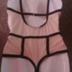 JUAN UC SIZE MEDIUM BODY SUIT NUDE BLACK TRIM & LACE SNAP CROTCH SEXY! NEW