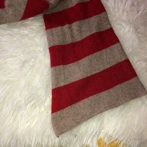 JUCCA Wool Cashmere Blend Tan Red Stripes Scarf Made In Italy.