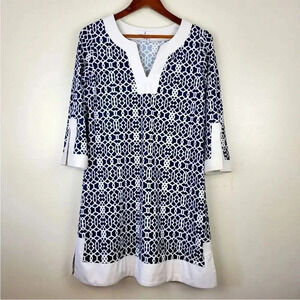 JUDE CONNALLY Holly Shift Dress Coastal Geometric Blue White S