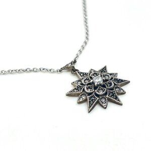 JUDITH JACK 925 MARCASITE STARBURST NECKLACE STERLING SILVER CZ SUN PENDANT