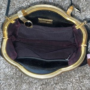 JUDITH LEIBER VINTAGE CROSSBODY/CLUTCH. Black. Some slight fading on gold accent area. Authentic.
