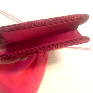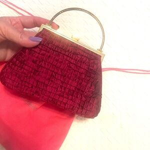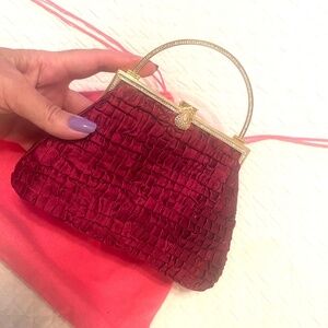 Excellent Condition! Worn Once! Cranberry satin. Gold metal detail with Swarovski crystals. Comes with dust bag. Vintage. (Like new!)
