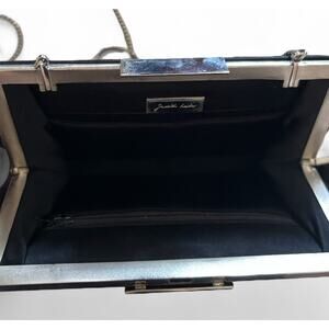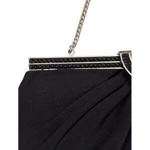 JUDITH LEIBER black satin jeweled clasp clutch bag chain strap handbag Dust Bag