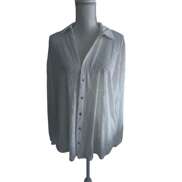 JUDITH MARCH Beach Cowgirl White Sequined Button Down Shirt Top Size Large