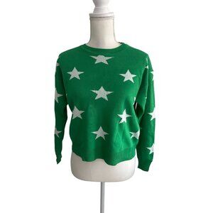 JUDITH MARCH Green White Star Print Sweater Size Large