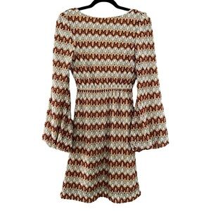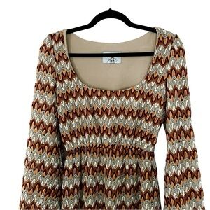 JUDITH MARCH Knit Crochet Brown Neutral Stripe Bubble Sleeve Dress Sz M