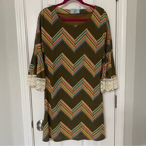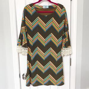 JUDITH MARCH • Retro Brown Chevron Bell Sleeve Dress