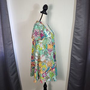 JUDITH MARCH Retro Colorful Floral V Neck Swing Dress Size Medium