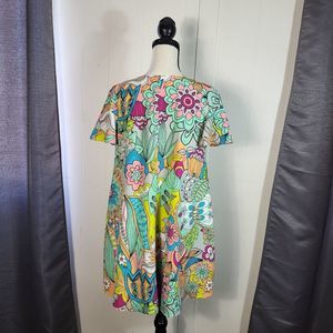 Playful and perfect for spring and summer! This dress is a swing style with a V neckline and short sleeves. All over retro floral pattern. EUC.