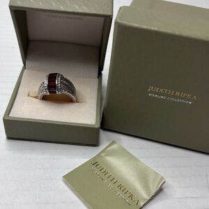 JUDITH RIPKA Sterling Silver Garnett Stone Ring Size 7