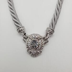 JUDITH RIPKA Sterling Silver Gray Silk Cord Necklace Removable Pendant 17"