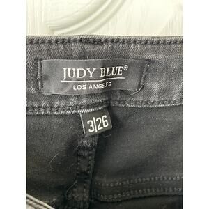 JUDY BLUE Black Distressed Knee Slim Fit Jeans