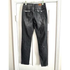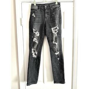 JUDY BLUE Distressed Boyfriend Fit Charcoal Gray Bleach Splatter Jeans - Sz 1/25