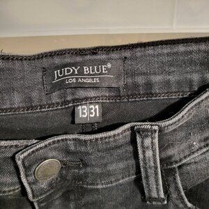 JUDY BLUE FLANNEL LINED BLACK DISTRESSED SKINNY JEANS SZ 13/31