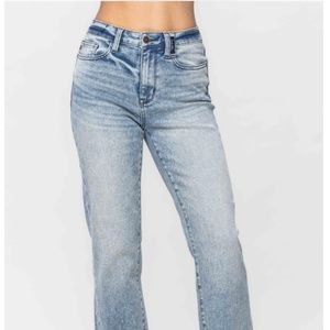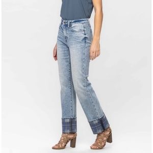 JUDY BLUE HIGH WAIST VINTAGE PLAID CUFF STRAIGHT JEANS