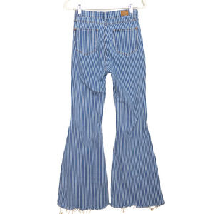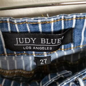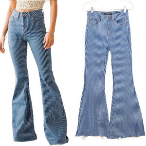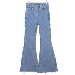 JUDY BLUE Super Flare Ultra High Rise Jeans in Blue Stripe Raw Hem Women's 27