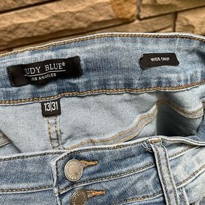 JUDY BLUE Tummy Control High waisted wide crop double button cropped jeans 13 31