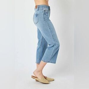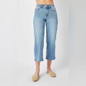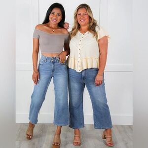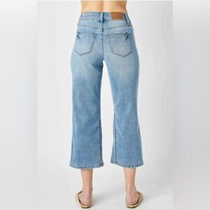 JUDY BLUE -Tummy Control High waisted wide crop double button cropped jeans