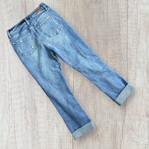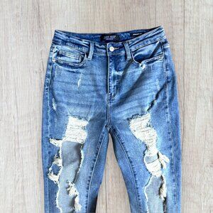 JUDY BLUE Very Distressed Ripped Straight Fit Medium Wash Cuff Hem Jeans 7 / 28