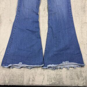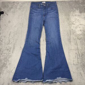 JUDY BLUE Womens Frayed Flare Jeans High Rise Medium Wash Y2K Wide Leg Cute