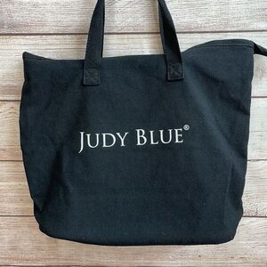 EXCELLENT CONDITION JUDY BLUE TOTE BAG IN BLACK ZIP TOP ZIP INSIDE POCKET MEASURES 12 X 15.5 INCHES