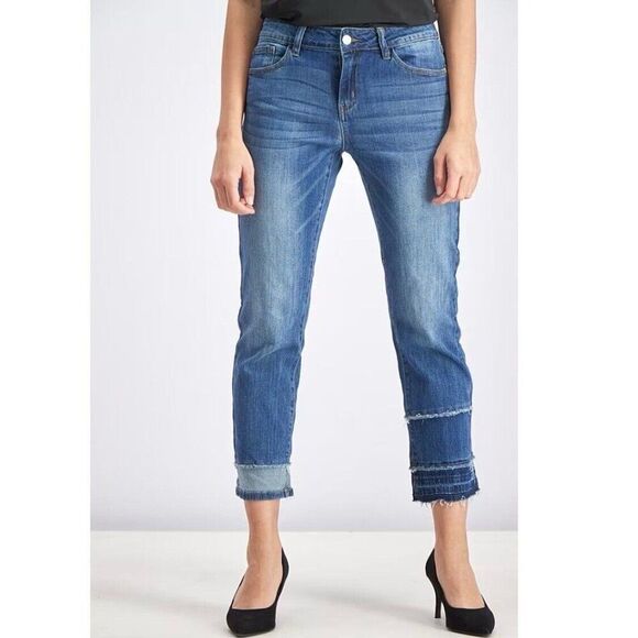 Women’s JUDY BLUE Straight Leg Fit JB8418 Tiered Ankle Hem Blue Denim Jeans. Unique detail on the ankles. Zipper fly with button closure. Belt loops. 5 pocket styling.