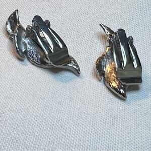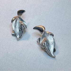 JUDY LEE VINTAGE 1950 MID CENTURY FAUX SILVER CURVY LEAF CLIP ON EARRINGS