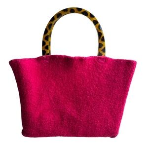 JUDY Nantucket tote bag in a hot pink felt with a bead studded puffy flower and the coolest acrylic leopard spot handles. So cute!