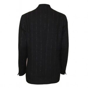 Refined and versatile, this Judy’s Place blazer is designed with a modern minimal edge. Crafted in a sleek black fabric with subtle pinstripes, it offers a sophisticated yet understated look. The single-breasted silhouette features a deep V-neckline, tonal button closure, and front welt pockets, making it both practical and polished. A smooth satin lining ensures comfort and ease of wear, while the tailored cut adds structure and elegance.