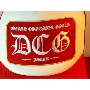 JUGRNAUT x DCG Dreams Conquer Goals Red Trucker Hat Embroidered
