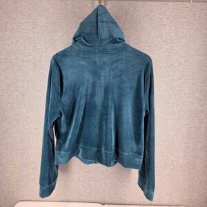 JUICY BY JUICY COUTURE GIRLS SIZE XL VELOUR ZIP-UP HOODIE TEAL JUICY ON HOOD