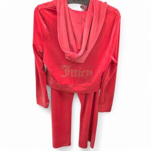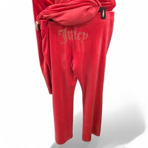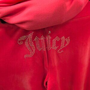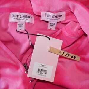 JUICY COUTURE BLING Velour TRACKSUIT Size L Pants + Hoodie 2 Piece Set Hot Pink