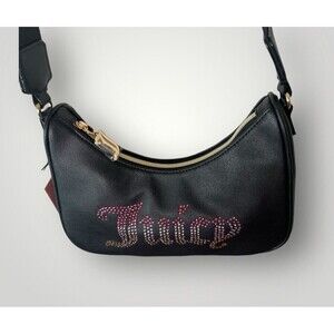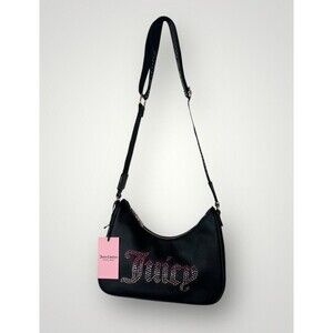 JUICY COUTURE Bag Obsession Crossbody Women Purse Black Rhinestone Accent New