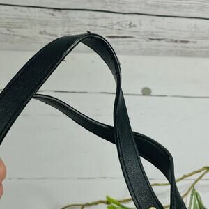 Black satchel style with snap closure. Lovely gold local and key accent on the front. Large opening. One zipper pocket on the inside and two small organizing pockets. Large snap pocket on the back. Pockets are lined with cream fabric with Juicy Couture famous crown logo. Faux leather